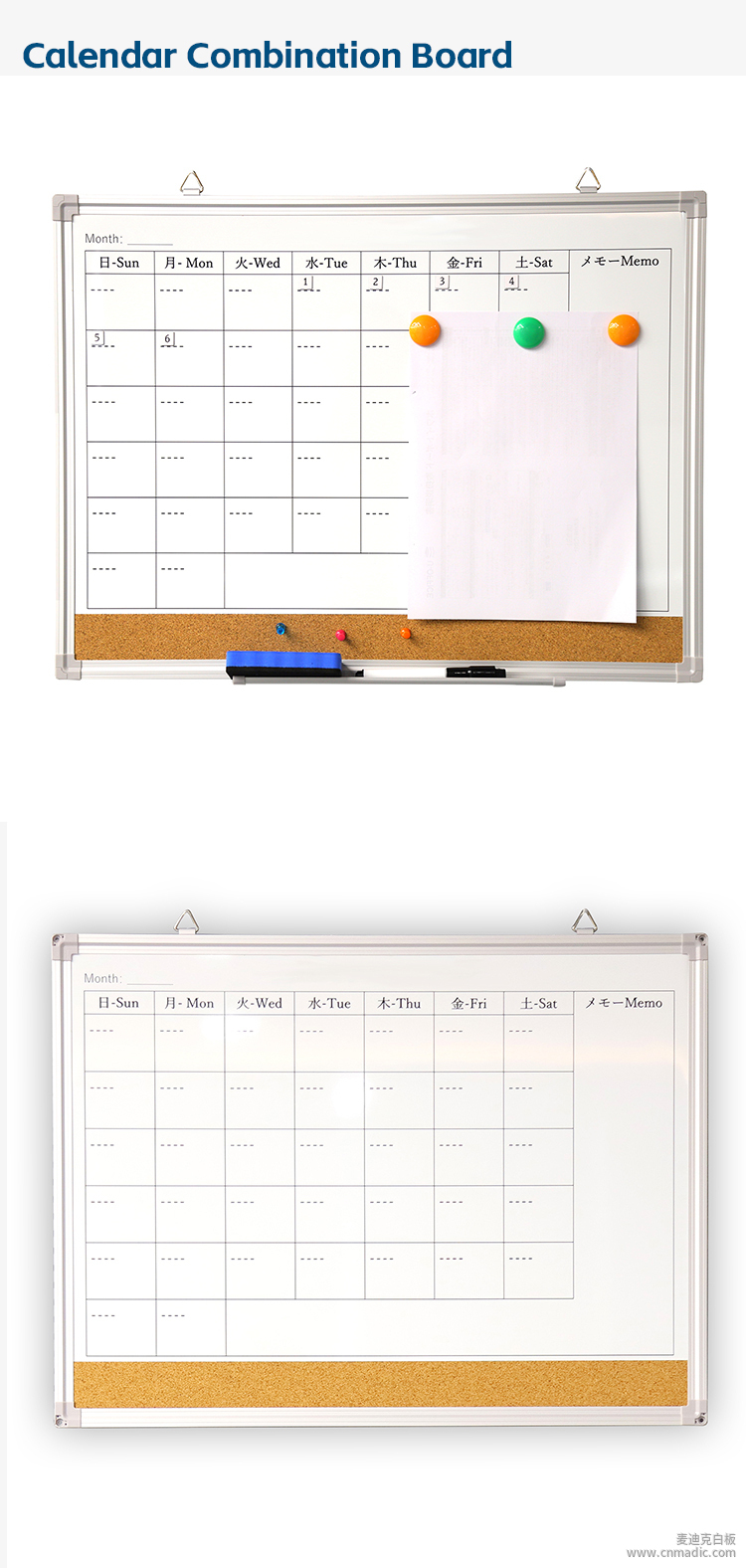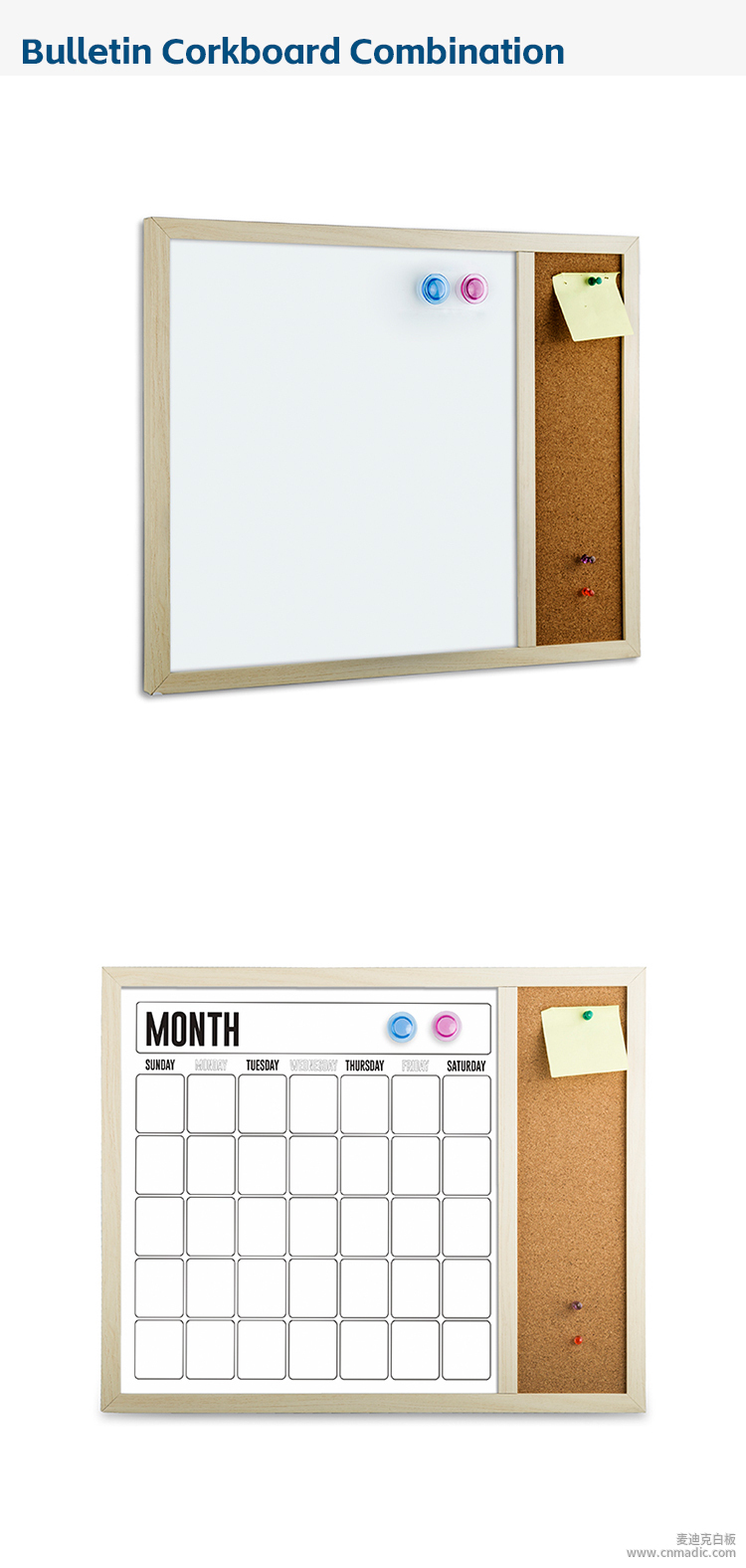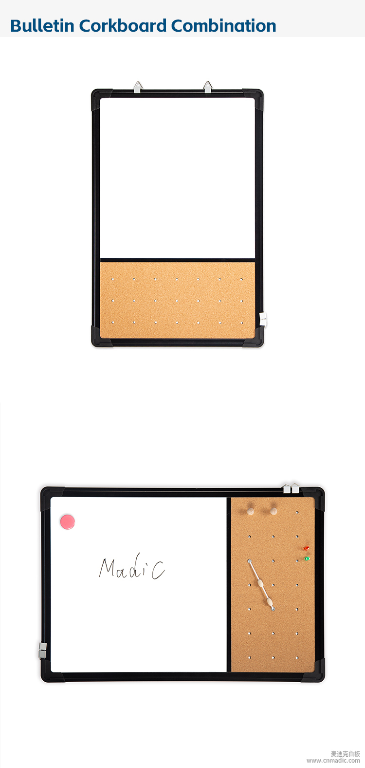 惠州市麥迪克科技有限公司(原深圳市麥迪克家居用品有限公司,白板OEM、ODM廠家,擁有20多年的白板寫字板研發(fā)、生產(chǎn)經(jīng)驗(yàn),跨境專供。)當(dāng)前位置:麥迪克白板廠家 > 軟木結(jié)合板 > 軟木組合板多尺寸軟木告示板定制